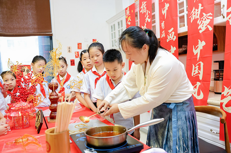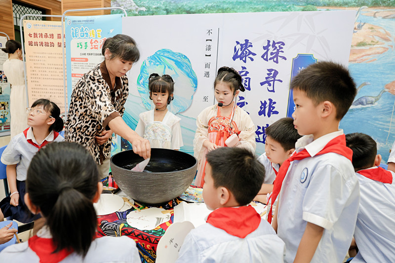 沉浸式展示中,糖画制作、漆扇制作等祖孙共学非遗活动,木杆秤制作、无人机现场课等科技创新代际学习展示,体现了代际学习推动文化传承、科技与生活教育的深度融合。