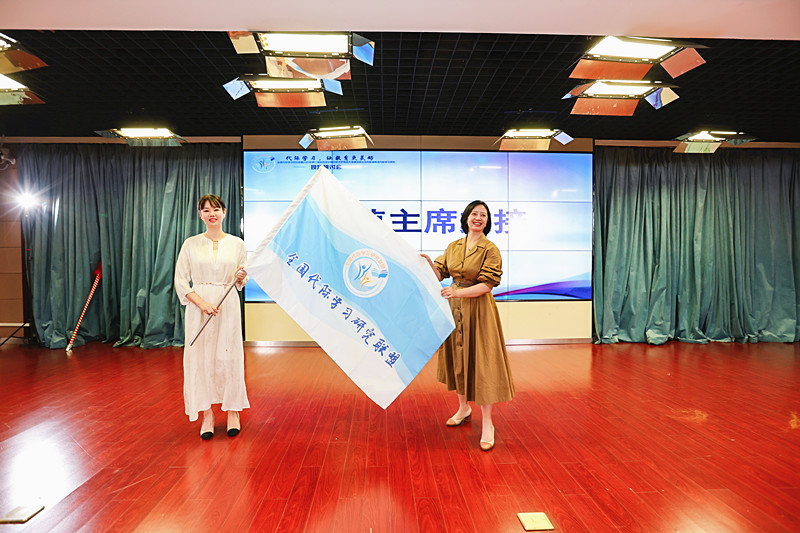 本次会议还公布了相关评比结果,举行了联盟新成员授牌与轮值主席校交接仪式。合肥市六安路小学中铁国际城校区的金红校长将主席旗郑重地交予上海市松江区九里亭街道社区老年学校曹天晴校长。
