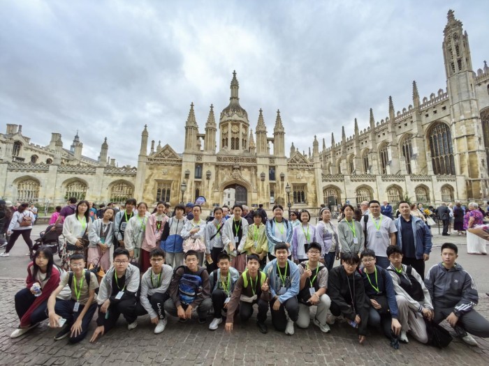 剑桥大学城体验:泛舟康河,领略大学城风光。师生们参观了霍金捐赠的“时间吞噬者”时钟、寓意珍惜时间的蝉形雕塑,并在牛顿苹果树前合影,感悟科学精神的传承。