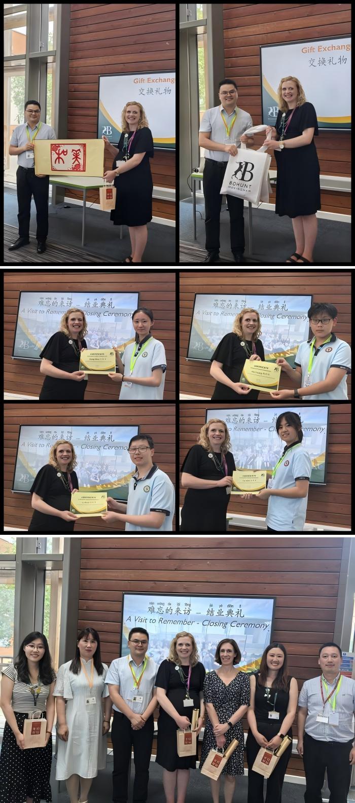 临别之际,中英学生互赠亲笔书信,并共同呈现了一场精彩的联欢会。玫瑰园学生展示了英文古诗朗诵、中国传统剪纸、趣味绕口令、12孔陶笛演奏及中文歌曲演唱;博航特学生则表演了国潮舞蹈《寄明月》,赢得热烈掌声。此次交流不仅是一次语言文化的切磋,更是一次宝贵的自我成长、文明互鉴与认知升级之旅,其深远意义将伴随每位学生的成长。