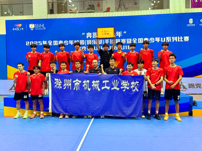 在8月11日结束的2025年“奔跑吧·少年”全国青少年校园(俱乐部)手球联赛暨全国青少年U系列比赛总决赛校园组的激烈比拼中,滁州市机械工业学校手球队凭借顽强拼搏的精神和精湛的技艺,一路过关斩将,最终斩获男子U18校园组季军,为学校争得了荣誉,也在全国青少年手球赛事中留下了浓墨重彩的一笔。