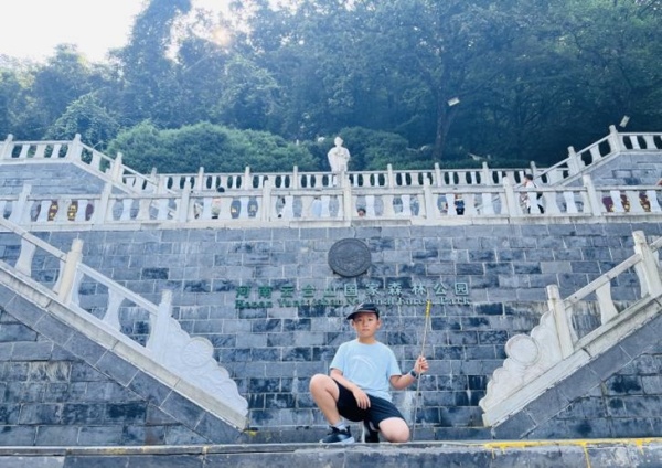 吴宗博同学走进了王维诗里的云台山,如同翻开一本描绘山水的绝美课本。踏入红石峡,红色的岩石在流水的长期冲刷下,呈现出温润迷人的光泽,碧绿的潭水恰似镶嵌在峡谷中的璀璨翡翠,这与课本中“素湍绿潭,回清倒影”的描写完美契合。登顶茱萸峰后,云雾在脚下悠悠飘荡,连绵的远山如黛色画卷在眼前铺展,刹那间,便领会了王维“遥知兄弟登高处”的深远意境。