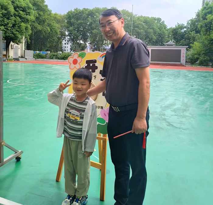 早晨,学校门口充满欢声笑语。孩子们背着小书包,怀着好奇与期待,走上鲜艳的红地毯,敲响寓意智慧与成长的“启智锣”。骆飞校长、吴延儒副书记、尹成波副校长等校领导与小交警分列两侧,微笑欢迎每一位孩子。