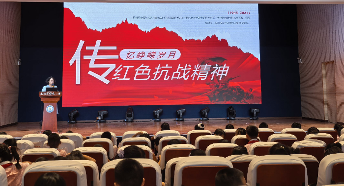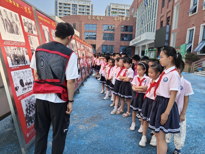 随后,师生移步报告厅,开启“烽火忆峥嵘・赤心筑未来”红色主题宣讲活动。红领巾讲解员通过情景剧生动再现抗战场景,市博物馆讲师深情讲述英雄故事,“抗战知识小课堂”的互动问答让历史知识变得鲜活有趣;《童声里的抗战记忆》诗歌联诵和《我们是共产主义接班人》合唱,用童声传递红色信仰;红色主题展览通过一幅幅图片、一件件实物,让学生直观感受历史,体会和平的来之不易。