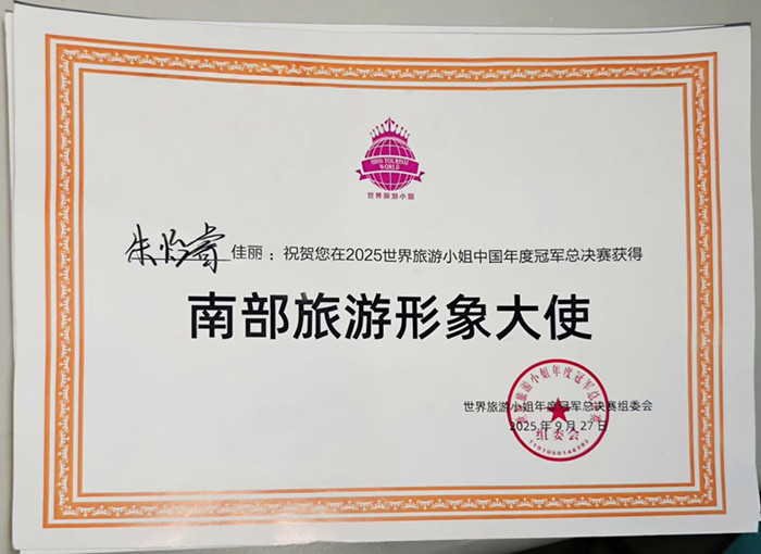安徽财贸职业学院学子朱怡睿荣获2025世界旅游小姐中国总决赛“南部旅游形象大使”称号