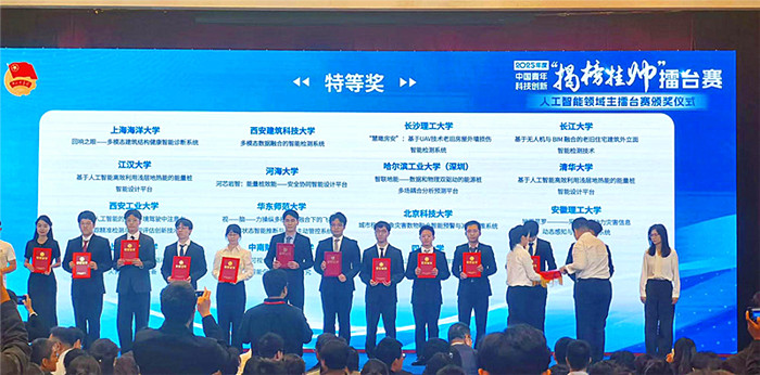 10月18日至20日,由共青团中央、中国科协、教育部、中国社会科学院、全国学联共同主办的2025年度第十九届全国“挑战杯”揭榜挂帅擂台赛(人工智能领域)决赛在上海落下帷幕。安徽理工大学安全科学与工程学院陆伟教授、李金虎副教授、卓辉博士指导的学生项目“地网星罗--采空区热动力灾害信息动态感知与智能预警系统”成功揭榜“基于多模态的巨灾预警及减损技术研究”榜题,荣获特等奖,实现了学校在该项赛事中的历史性突破。
