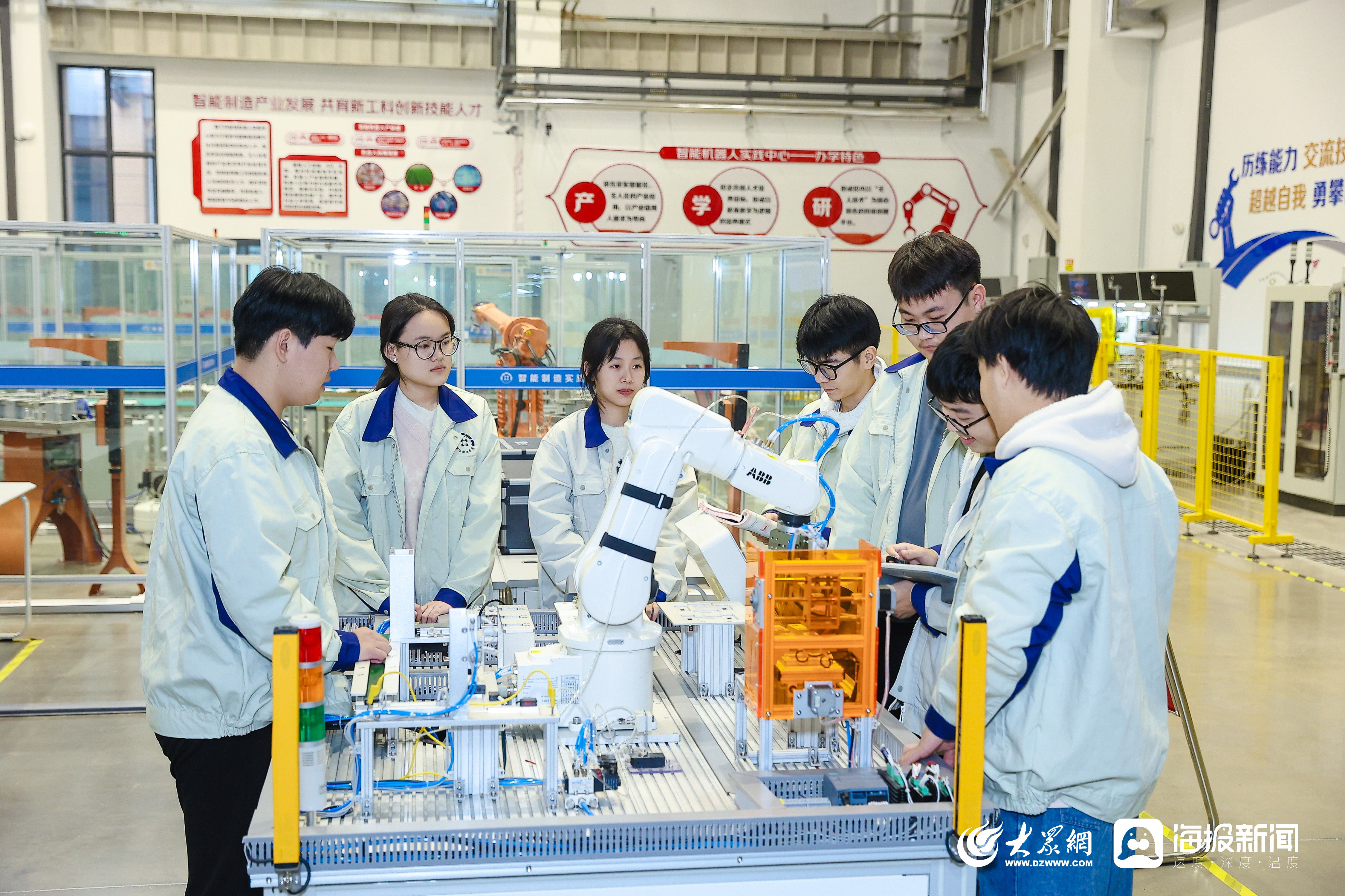 在调研采访过程中,淄博职业技术大学党委书记刘伟亲自担任“讲解员”,深入介绍了学校的发展历程与改革实践。重点解析了学校在深化产教融合方面的探索与成果,为公众理解现代职业教育的发展提供了一个生动样本。“职业教育不能只盯着课堂,要盯着生产线、盯着产业链。”刘伟的这句话道出了学校持续深化产教融合的决心。