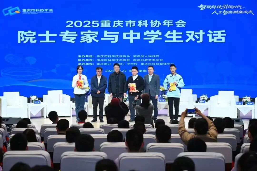 2025年重庆市科学技术协会年会在渝隆重举行。本届年会特设“院士专家与中学生对话”专场活动,为热爱科学的青少年搭建了与顶尖科学家零距离交流的珍贵平台。重庆文德中学校初三年级唐宇喆同学作为优秀学生代表受邀参与,与三位院士专家展开精彩对话,充分展现出扎实的科学素养与自信从容。