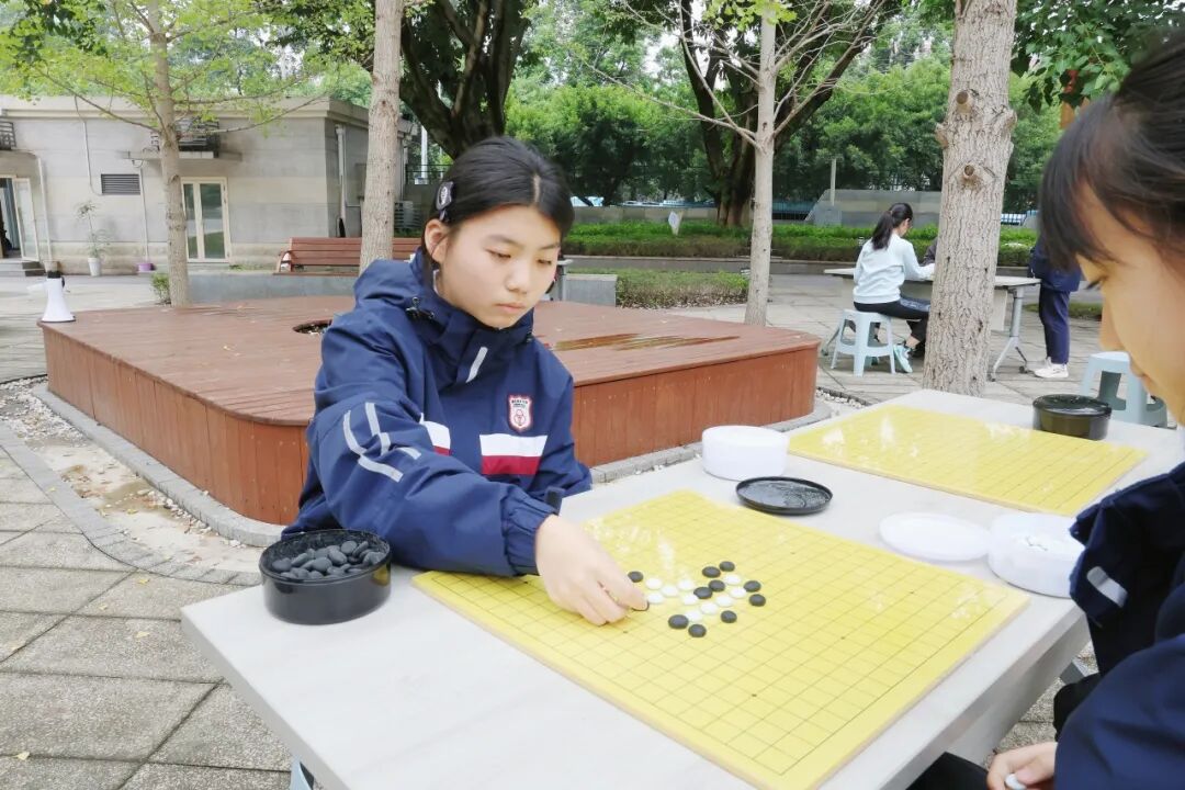 智力运动五子棋比赛中,选手们沉着冷静,在棋盘上深思熟虑、谋定后动,每一步落子都尽显智慧风采,展现了育实学子文武双全的一面。