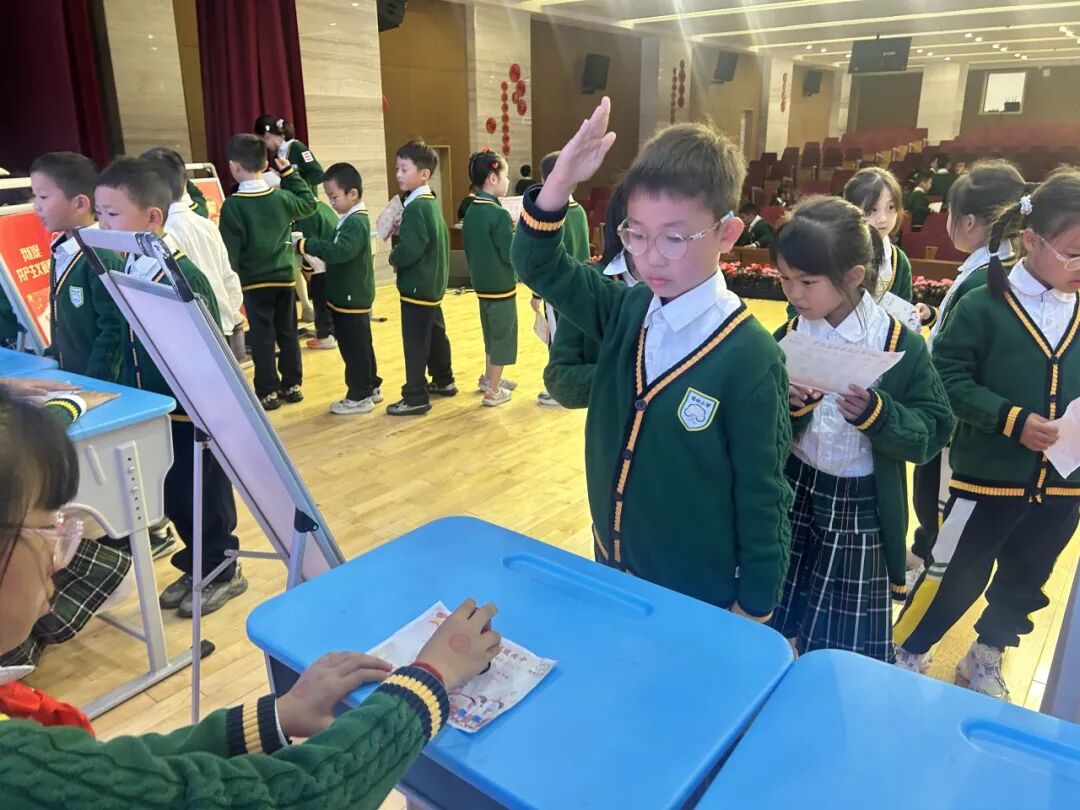 学校还举行了“六知六会”知识大闯关,设置“红领巾我会戴”“队歌我会唱”“队礼我会敬”“队号我会呼”“誓词我会背”“少先队知识小达人”等关卡。通过闯关活动,孩子们掌握“六知六会”本领,并认真正确地撰写入队申请书,最终获得入队资格。