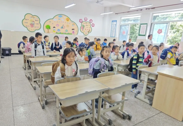 早上入学场景展示,“小梅花”们到校了!背好书包,穿着整齐,有序进入教室,迅速取出学习用品分类整齐摆放在书桌内,再将书包、水杯整齐摆放在书包柜里面。一个个有序、安静,为孩子们的入学状态点赞!
