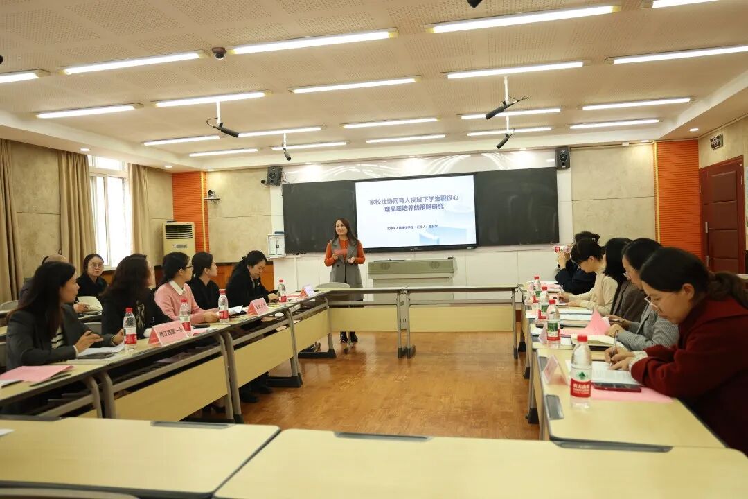 接着,六位课题负责人依次作开题报告,从研究背景、核心目标等多方面全面阐述,勾勒出详实可行的研究蓝图,各课题亮点鲜明、各有侧重。人民路小学谢开宇副校长主持的《家校社协同育人视域下学生积极心理品质培养的策略研究》:选题贴合教育热点,文献梳理数据化、图示化,理论支撑坚实、思路清晰。作为区级财务专家库成员的学校专职财务人员刘丽虹出纳主持的《学校内部控制机制构建与实施路径研究》:聚焦学校管理规范,直面内控问题,对完善预算管理与风险防控具有现实意义。两江民居第一小学徐春玲老师主持的《小学数学“三阶式”课内诊断作业设计与实施研究》:立足“双减”与课堂实效,内容紧扣目标、逻辑连贯,技术路线合理。邹文娟老师主持的《“大思政”视域下小学德育活动设计与实施实践研究》:主题聚焦时代特点,核心概念界定清晰,研究方法恰当、操作性强。实验小学罗春梅副校长主持的《跨学科学习视角下小学高段语文综合性学习板块项目化设计与评价应用研究》:开题定位精准,报告框架完整、逻辑闭环,表述规范。北碚区教师进修学院王鸿老师主持的《基于真实问题情境的原创试题命制的策略研究》:契合教育评价改革需求,以真实情境为核心,打破传统试题局限,具有实践价值与创新性。