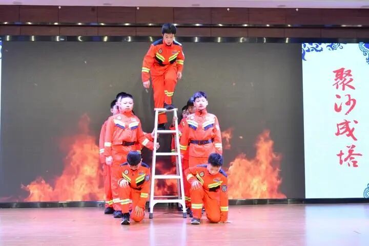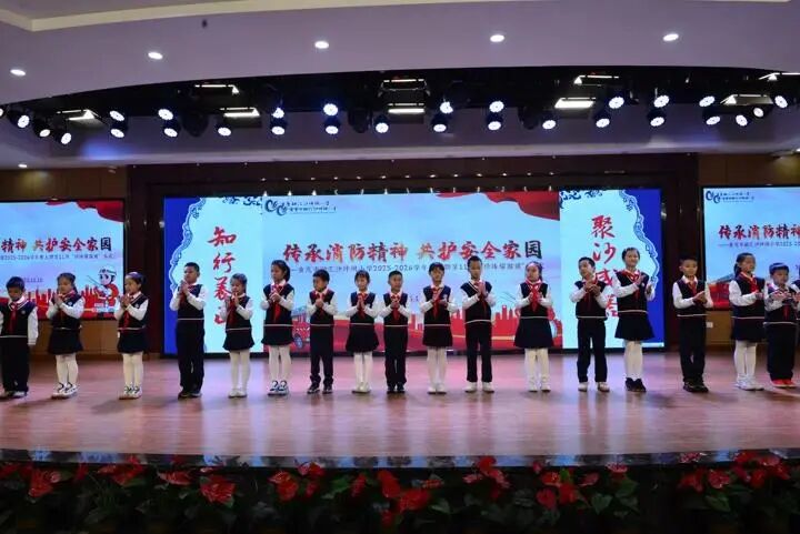 六(1)中队队员通过《悦动防线 声动安全》主题展演,以舞蹈再现消防员逆行身影,诠释守护与勇敢的力量;以朗诵串联火灾预防与逃生要点,将消防安全知识融入视听表达,赢得现场热烈掌声。