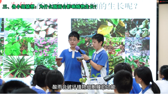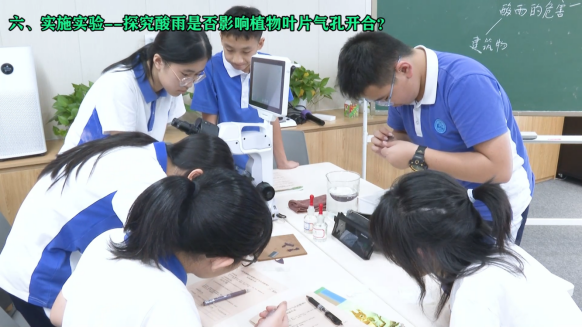 设计思路:以STSE理念为指导,围绕“探究酸雨的危害”,构建“课前预实验—课中分层探究—课后实践延伸”的教学体系。课前指导学生采用白醋模拟酸雨,通过泥鳅、虾等食材开展家庭自主实验,初步探索酸雨对动物的影响;课中引导学生从个体(种子发芽、幼苗生长)、器官(根、叶)、细胞(细胞膜、气孔)三个层面系统探究酸雨对植物的危害;课后通过防控酸雨海报制作,融合多学科知识,强化社会责任意识。