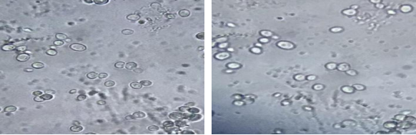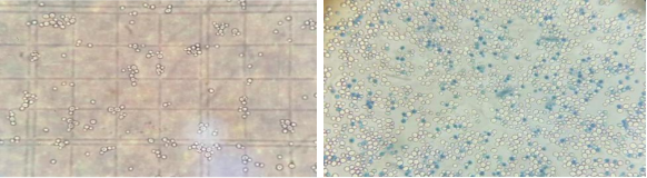 图丨未染色(左图)与染色(右图)酵母菌对比图