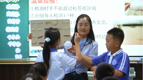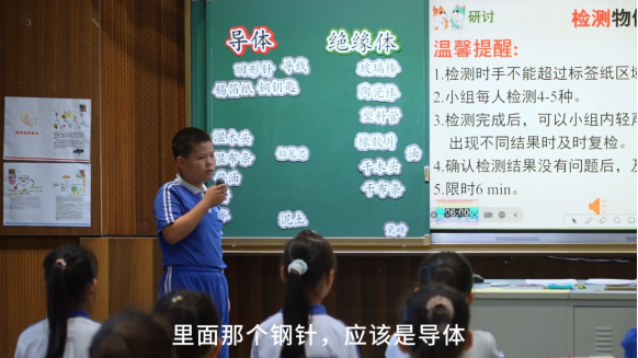 创新亮点:一是工具改进:采用人体导电球替换传统电路检测器,破除“人体与水不导电”的错误认知;二是检测设计:将物体分类并用热熔胶固定在专用面板,保障了检测的系统性和对比性,解决了物品遗失与操作混乱的问题,提升了探究效率;三是概念深化:引入“玻璃加热后由绝缘体变成导体”视频,直观呈现导体与绝缘体的相对性,帮助学生理解科学定义中“容易”与“不容易”的核心内涵,有效突破概念绝对化的认知难点;四是素养内化:通过“制作安全用电小贴士”的实践活动,让学生在知识应用中深化安全用电意识,实现知识传授与素养培养的有机结合。