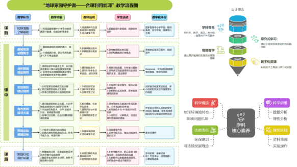 设计思路:以培养学生科学素养、数字素养和环保态度责任为核心目标,融合多学科知识,通过引导学生运用数学方法分析能源数据并提出猜想,借助科学方法进行探究实践,实现学科知识的有机整合。依托国家智慧中小学平台让学生预习能源知识,引导学生基于能源消耗与全球变暖数据提出猜想,利用创新实验教具模拟温室效应实验验证猜想,结合AI智能体对话探讨合理用能方案,并延伸到家庭与社区的节能实践。