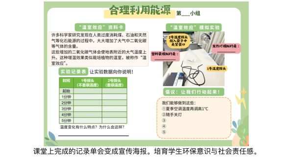 课例通过数字化工具与跨学科教学的深度融合,有效提升学生的科学探究能力,实现知识学习、实验探究与社会责任培养的有机融合,为能源与环境教育提供了可推广的教学范式。