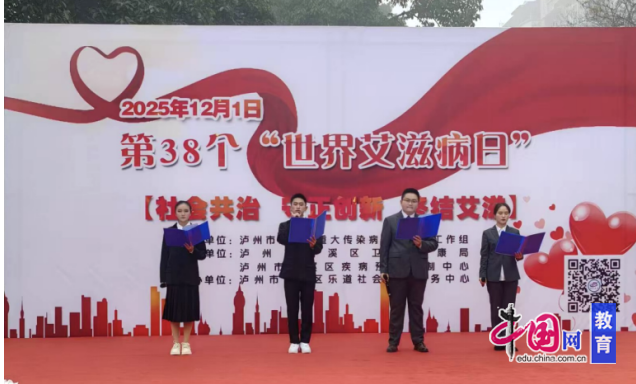 在第38个“世界艾滋病日”当日,泸州市纳溪区江南职业中学师生以行动响应号召,主动投身地方防艾宣传,用青春活力点燃现场,用专业之声传递温暖,携手防“艾”,共筑健康。