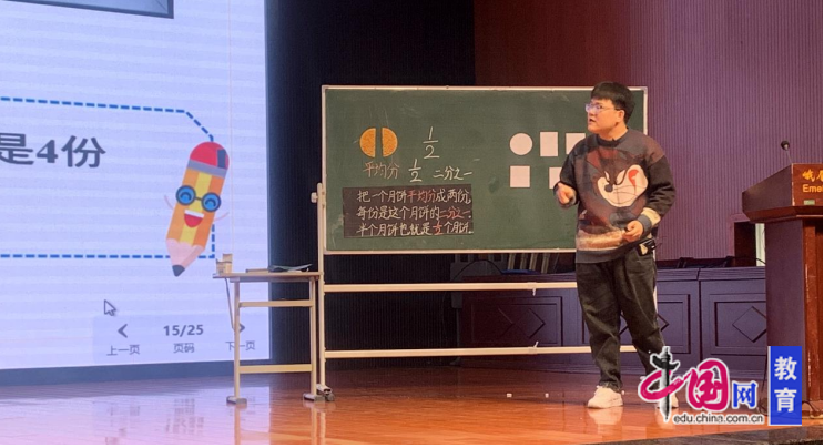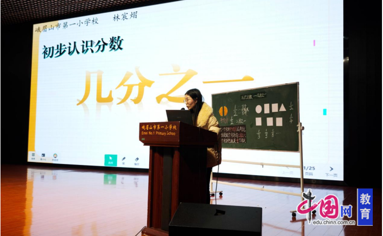 近日,峨眉山市第一小学校新教师教学展示活动如期举行。活动以人教版三年级上册《几分之一》为核心内容,采用“教材解析+微课展示”双环节模式,陈洪利老师解读教材内核,林宸熠老师呈现课堂实践,双线并行为校内教师搭建互学互鉴的专业成长平台。