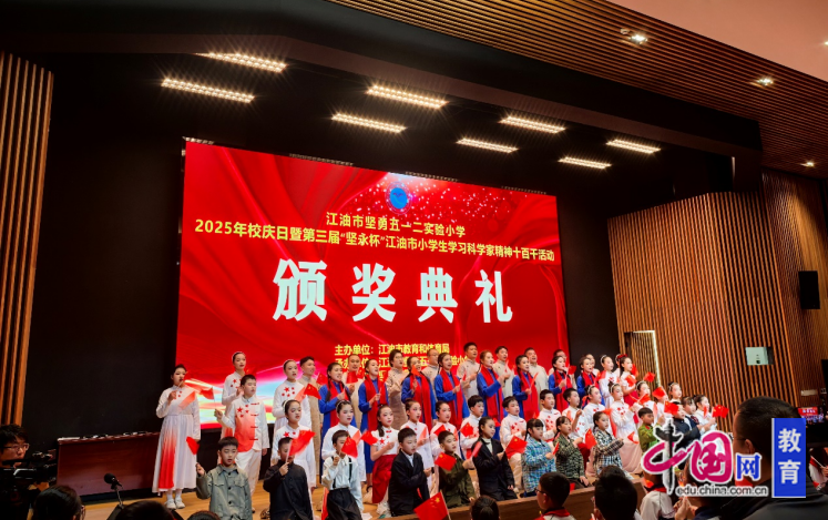 12月2日,江油市坚勇五一二实验小学举行2025年校庆日暨第三届“坚永杯”江油市小学生学习科学家精神颁奖盛典。本次活动以“传承·筑梦·致远”为主题,近300名嘉宾、获奖师生及家长代表现场参与,近2000人通过线上直播共同见证。