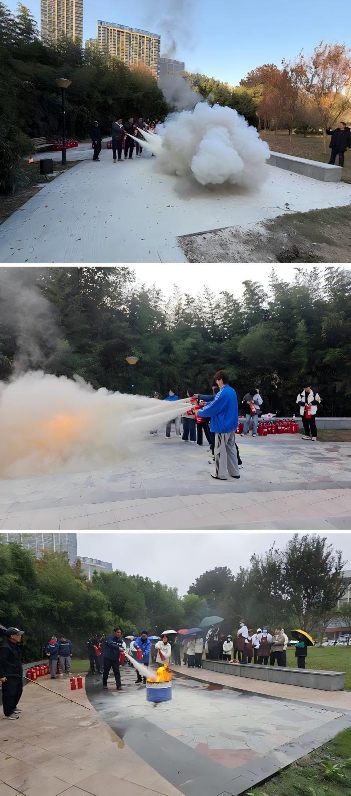 开展“真灭火、真动作”实操实训。11月11日至 28日,学校在滨江校区(北区)4号实验楼西广场分6场次组织开展灭火实战演练,机关党委教职工、二级学院师生代表、宿管人员、食堂员工、安保队伍等共计500余人参与。演练现场,保卫处工作人员结合校园火灾高发场景,详细讲解大功率电器违规使用、线路老化、杂物堆积等常见火灾隐患的识别方法,以及日常用火、用电、用气的安全规范;针对干粉灭火器的“提、拔、握、压”使用步骤,指导每一位参与者亲手操作。在模拟火灾现场,大家依次拿起灭火器对准火焰根部精准喷射,成功扑灭模拟火源,让参与师生直观感受初期火灾的处置流程。