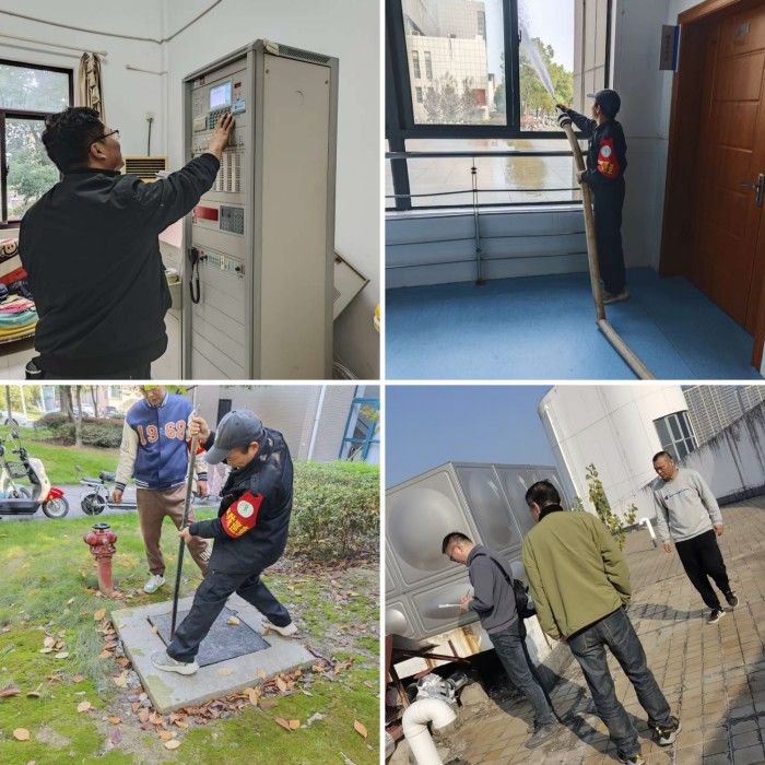 组织“早发现、早整改”隐患排查。消防宣传月期间,学校组织各部门、单位开展消防安全自查、检查,重点检查消防通道畅通情况、用火用电是否规范、消防设施设备是否完善,是否存在违规使用大功率电器、乱拉电线等现象。同时,保卫处组织消防巡查和维保人员对滨江校区和产学研创中心全部楼栋开展消防检查,重点检查室内消防栓压力是否达标、灭火器配备是否充足及各类消防设施设备是否完好,发现的隐患及时整改,并建立安全隐患整改台账。