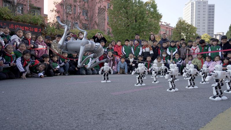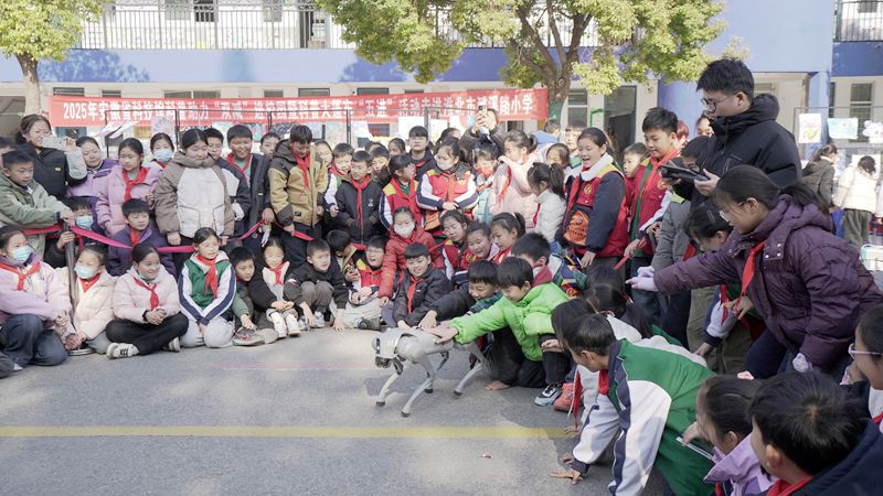 上午9点30分,核心活动环节全面展开。科技大篷车互动体验区人气爆棚,省科技馆科普大篷车带来的机器人舞蹈灵动酷炫,机器狗互动趣味十足,同学们争相与智能设备互动,现场氛围热烈非凡;学生们还以班级为单位轮流参观各类科普仪器,在科协工作人员的现场讲解与指导下,直观感受科学原理与非遗技艺的奇妙关联,一个个好奇的问题在互动中得到解答。