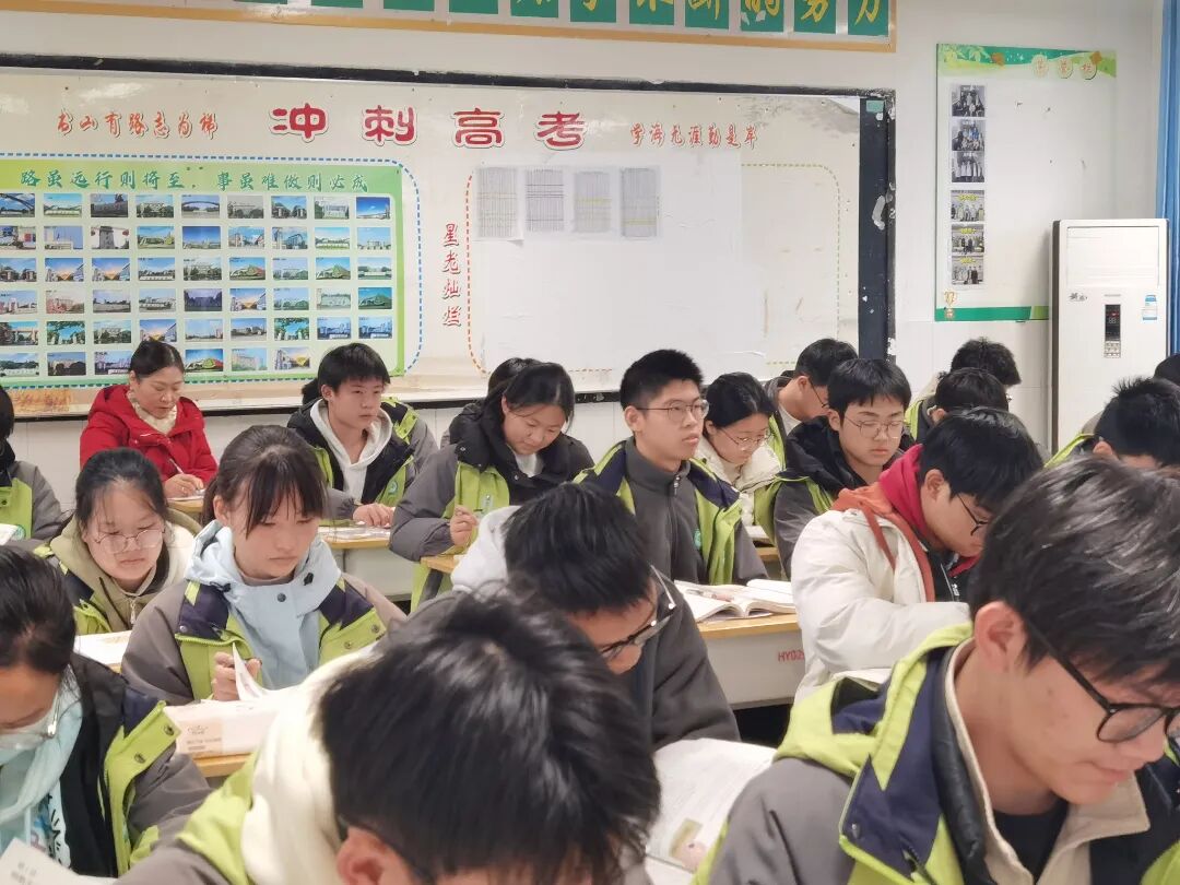 学院饶院长高度评价了华蓥中学的办学成果:教育工作做得有声有色;学校办得有模有样、全体教职工有情有义,充分彰显了华蓥人的教育情怀和使命担当。饶院长还结合高2026届生源入口质量不高,但物理、数学学科均分名列全区前茅的实例,指出了人是一切事物成败的关键,心是决定一切成败的核心。她还就学校将优秀教师放在楼道关键位置予以宣传之细节予以充分肯定,体现了学校尊师重教的良好风尚,勉励学校发展大有希望;她还结合年级“123315”的备考策略中的具体细节和举措,充分赞扬了学校毕业年级备考思路清晰、举措务实、管理精细。