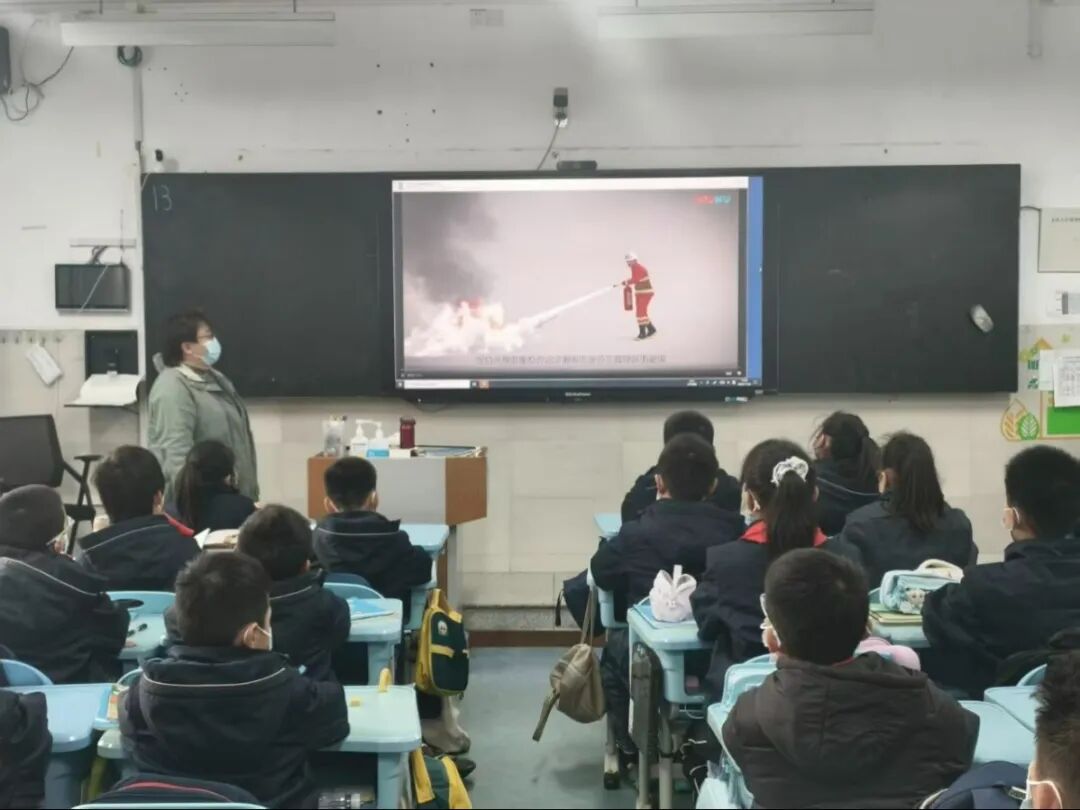 “观看视频学方法→实战演练练反应→亲手实操强技能→复盘总结固认知”,金山美利山小学以闭环模式推进演练,让安全技能真正扎根。15:40广播系统调试就绪,15:46学生们集中观看灭火器使用教学视频,胡跃君主任通过广播重申“快速不慌乱、有序不拥挤”的疏散准则。
