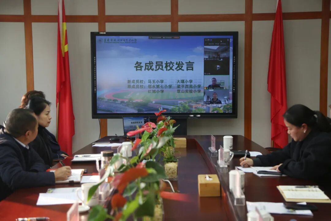 紧接着育才小学教育共同体深化发展工作会在建设村校区五楼会议室召开。育才小学副校长郑高主持会议。首先,大家观看了教共体发展的历程回顾视频。镜头流转间,从最初的构想萌芽、签约启航,到中期的初步协作、稳步推进,再到如今的扩容提质、深度融合,每一个关键节点都被逐一定格。视频不仅让在场同仁清晰铭记了教育协同发展的初心,更凝聚起了未来深化融合的坚定共识。