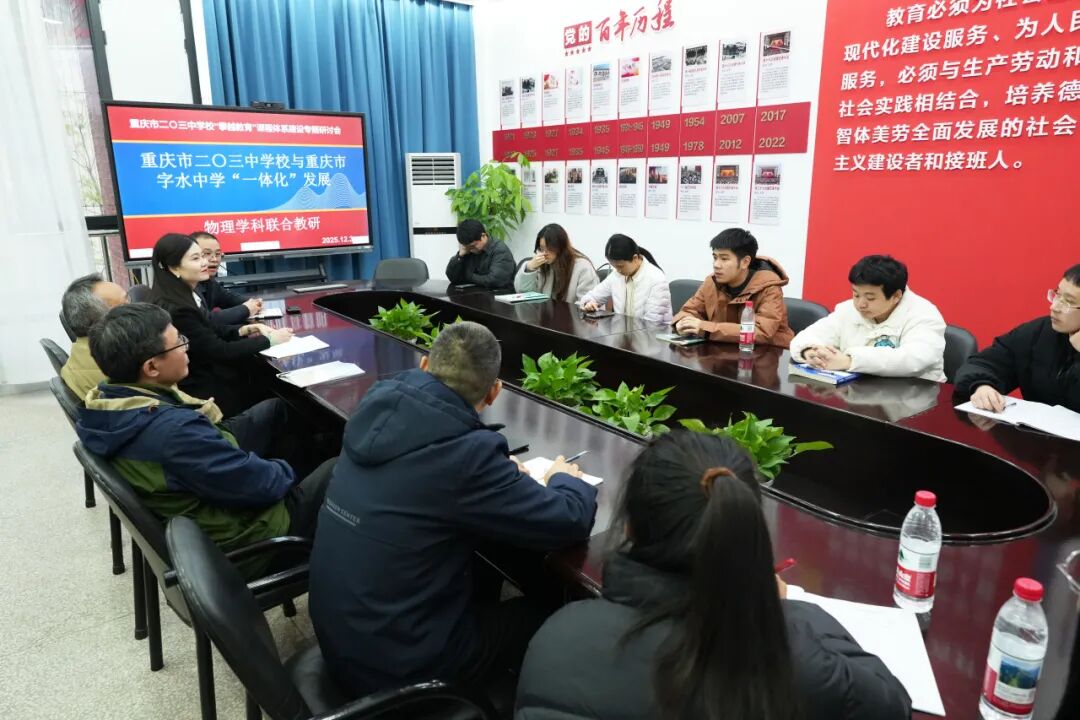 以重庆市二〇三中学第三届“攀越杯”中青年教师优质课大赛为契机,为了响应学校关于进一步加强各学科组与字水中学联合教研的号召,2025年12月3日下午,重庆市二〇三中学物理组开展了一场充实圆满的教研活动。