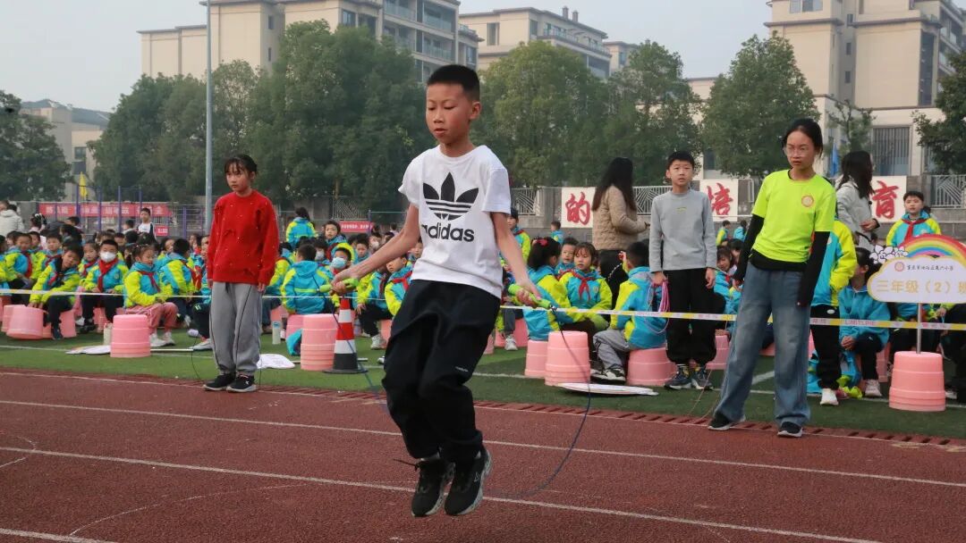 学生赛事以跳绳为核心,兼顾趣味与竞技,设置了30秒单人跳绳、一分钟单人跳绳、4×1分钟接力跳绳、集体长绳接力多个项目,覆盖低、中、高各个年级。赛场上,小运动员们精神抖擞,绳子在脚下飞速翻飞,如银蛇舞动,清脆的绳击地面声与加油呐喊声交织成章。单人赛中,选手们屏气凝神,比拼速度与耐力。