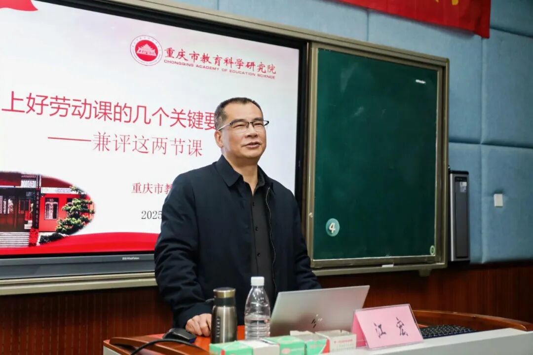 市教科院劳动教研员江宏老师认为两节课都成为了践行《劳动课标》的优秀范本,做到了紧扣实践本质与育人导向。随后以《上好劳动课的几个关键要素》为题做讲座,从课程性质、育人支柱等方面解析劳动教学要点,为劳动课提质增效提供实操指引。