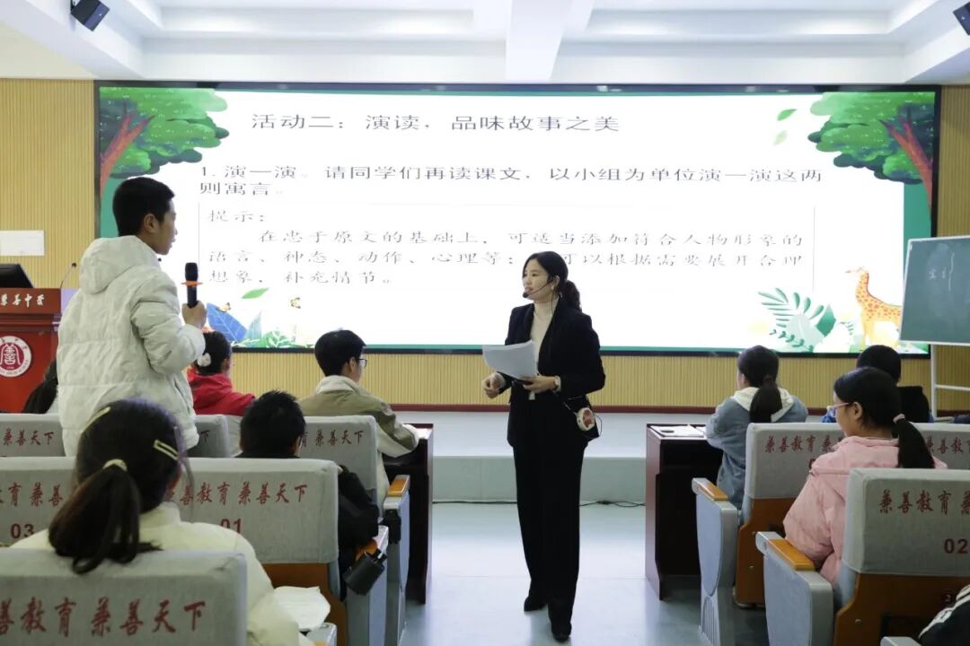 兼善中学甘屹老师以《品寓言之美 悟智慧之道》为主题,围绕故事之美、语言之美、寓意之美层层递进设计教学,通过合作探究、情境表演等形式丰富课堂互动;绵阳外国语学校战娜老师以“病例分析”为创新思路解读《寓言四则》,用“篇名-患者-病症-寓意”对照表梳理核心启示,最终以“做生活的‘寓言医生’”收尾,凸显理性育人目标。