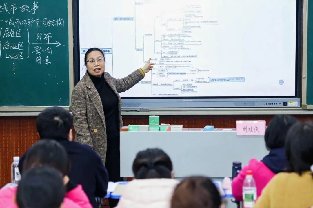 西南大学刘桂侠教授以《从“教地理”到“育人格”》讲座赋能,提出“品格是认知向行动转化的关键中介”,构建地理必备品格框架,分享“协同评价法”等实操策略,为地理教学渗透品格教育提供路径;周飚老师总结时强调,课堂需以活动引领探究、用体验式学习深化理解,同时明确课堂设计要兼具高度、宽度、深度与温度,为教共体地理教研指明方向。