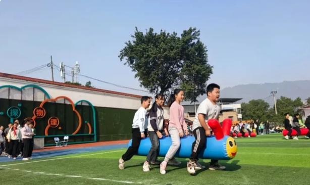教师们也不甘示弱,在穿插进行的“你抛我接”游戏中展现默契,引来阵阵喝彩。拔河比赛将运动会气氛推向高潮,绳缆两端的队员卯足力气,一旁的啦啦队呐喊震天,充分展现了集体力量的澎湃与团结精神的可贵。