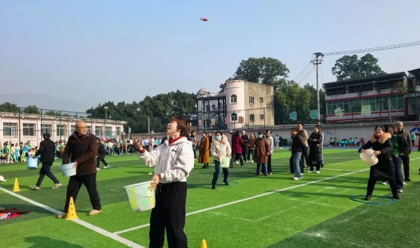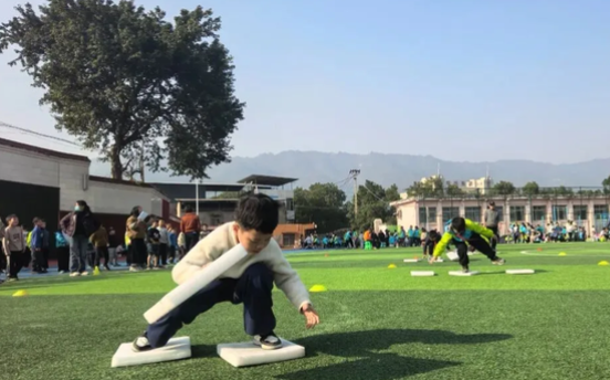 本次运动会精心设计了丰富多样、充满童趣的比赛项目,弱化竞技比拼,强调全员参与和团队合作。根据不同学段学生的身心特点,项目设置各有侧重:一二年级的“蚂蚁搬家”“赶小猪”“小青蛙过河”等游戏,锻炼了低年级孩子的身体协调性与基础运动能力。
