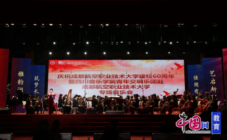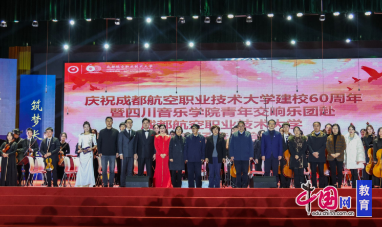 六十载薪火相传,一甲子弦歌不辍。12月6日晚,成都航空职业技术大学龙泉驿校区文体馆内流光溢彩、座无虚席——该校“庆祝建校60周年暨四川省高雅艺术进校园专场音乐会”在此举行。学校党委书记陈小红,党委副书记、纪委书记徐林出席活动。各界校友代表、校企合作单位代表、兄弟院校嘉宾及校内师生共计2000余人欢聚一堂,线下同庆;线上超过8000人次云端观礼。本次音乐会由该校教师赵茜与四川音乐学院艺术导聆罗雨嫣联袂主持。