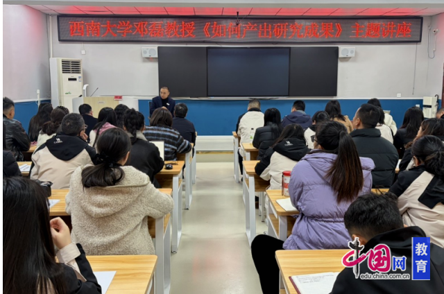 邓磊以中职教育的未来发展前景为切入点,以《如何产出研究成果》为题。深入剖析了当前中职教育面临的机遇与挑战。邓磊指出,中职教师不仅要“埋头拉车”,即深耕教学一线,不断提升自身的专业技能和教学水平;更要“抬头看路”,紧跟时代发展的步伐,准确把握教育发展的方向和趋势。