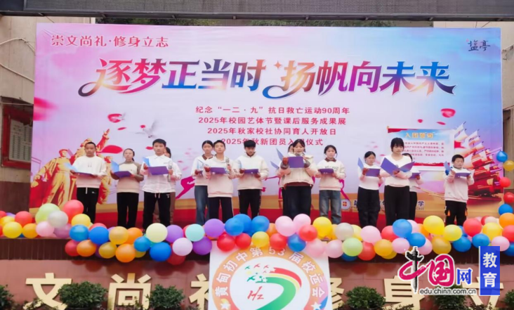 为全面落实立德树人根本任务,深入推进素质教育,充分展示学校课后服务成果与师生昂扬向上的精神风貌,12月4—5日,绵阳市盐亭县黄甸初中以“逐梦正当时 扬帆向未来”为主题,成功举行了第53届校园艺体节。本届艺体节集体育竞技、艺术展示、成果汇报于一体,内容丰富,形式多样,为广大师生呈现了一场精彩纷呈的校园文化盛宴。