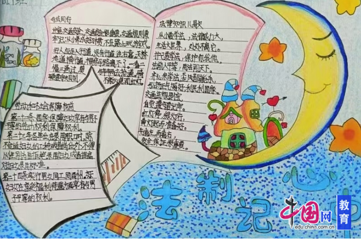 除主题班会与宪法晨读外,学校还搭建多元实践平台拓宽宪法学习路径。各班级精心创作宪法主题黑板报、手抄报,以图文并茂的形式呈现宪法知识、法治名言,打造各具特色的班级法治文化阵地,在校园内掀起了学法、知法、崇法的热潮。