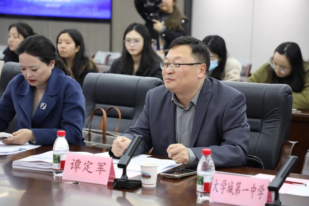 大学城一中王海洋校长介绍了以“三新一体化、教学评一体化、教研培一体化”共同驱动课程教学改革的实践。重师附中张远宝校长强调深耕课程建设,推动课堂从知识传递向思维赋能转型,并通过阶梯式成长平台加强教师队伍建设的理念。大学城树人小学书记王睿科介绍了以学校文化为办学的精神内核,以“培根壮干、生枝展叶”为理念进行课程建设的思考。高新区教研员王虎、吴跃进、谭兰从课程创新、教师专业素养、思政课建设、人工智能教学等不同方面进行了发言。