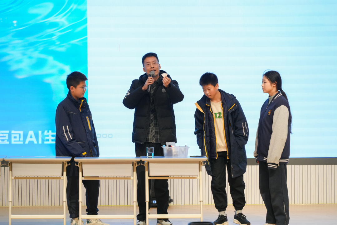 初二物理组通过“实验秀+成果展”的形式,生动演绎多学科知识融合。等离子大炮电光四射,空气炮“轰”出气流轨迹,马德堡半球拼力拉不开;“会跑的石头”在试剂作用下缓慢移动,揭示化学反应中的动态过程;数独、24点激活全场脑力竞技。