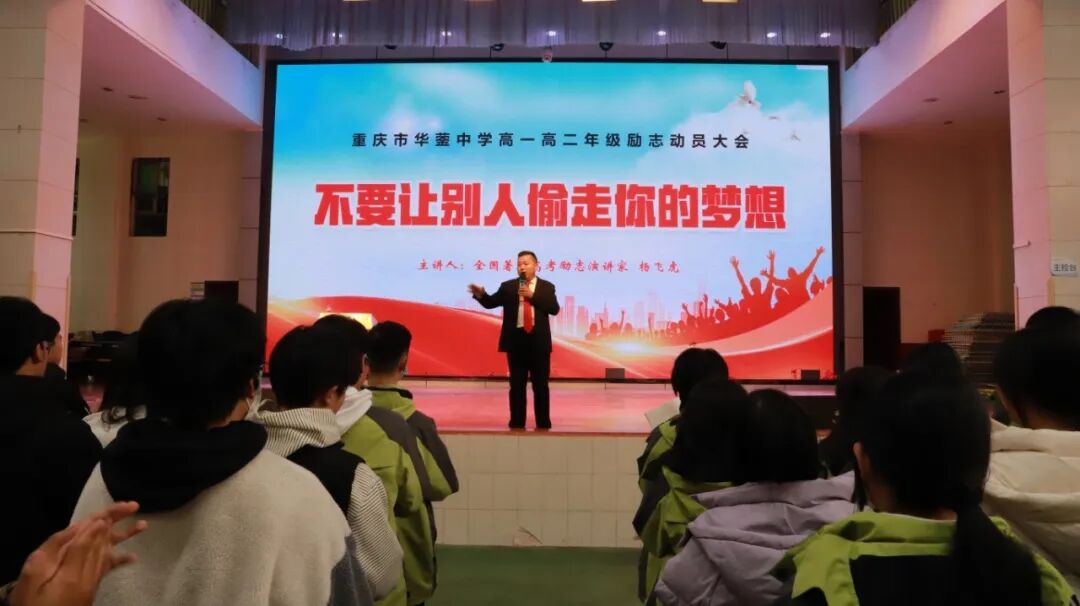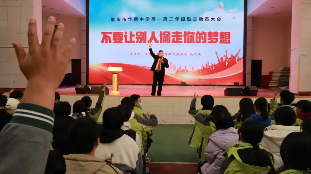 点燃奋斗激情,绽放青春梦想。为进一步激发同学们勤奋学习的热情,帮助全体同学更好地调整心理状态,激发学习潜能,12月1日下午,重庆市华蓥中学校特邀知名励志演说家杨飞虎老师到校开展励志演讲活动。本次活动由学校纪委冉钦书记主持,高一高二年级班主任和学生齐聚体育馆,共同聆听杨老师的精彩演讲。