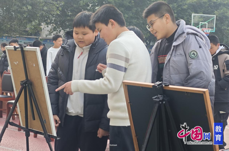 艺术节当日,学校操场展出了200余幅师生书画作品。师生的书法作品或苍劲有力,或飘逸灵动,展现了扎实的功底;国画、水彩画等绘画作品则以细腻的笔触描绘自然与人文之美;素描、卡通画、创意手工等作品题材多样,充满青春活力……作品展吸引众多师生驻足欣赏,一幅幅充满创意与情感的佳作,生动诠释了艺术与生活的交融。