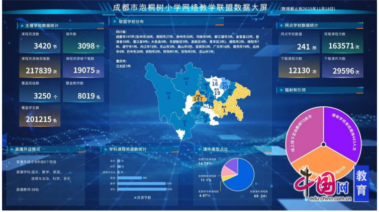 截至目前,成都市泡桐树小学牵头构建的网络教学联盟已形成广泛辐射效应,覆盖四川省内外17个市州、241所网点学校,涵盖3200多个班级,惠及二十余万学生。在这一跨越时空界限的教育新场景中,每一次云端直播、每一次线上研讨,都是对传统课堂形态与教研模式的有力突破与系统重塑。教师的角色也在这一过程中发生深刻转变,他们不仅是知识的传授者,更是跨越空间的资源联结者、适应多元学情的教学赋能者,推动教学真正实现从“面向全体”到“关注个体”的转变,精准助力每一位学生的全面成长。