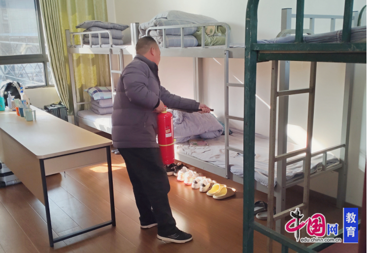 演练第二部分聚焦宿舍消防安全。参训人员系统学习了宿舍火灾预防、初期扑救及应急疏散等理论知识。在预设的宿舍火灾应急处置实操环节,针对“电路着火”和“被褥着火”两种常见火情,分别模拟了“有学生”与“无学生”在场下的不同处置流程。由安保人员和部分宿管员扮演的“学生”及救援人员,按照预案,从发现火情、初期灭火、报警求援到组织疏散,完整演练了从初期火灾到中期火灾的应对步骤,重点强调了扑救方法与人员安全疏散的优先级。