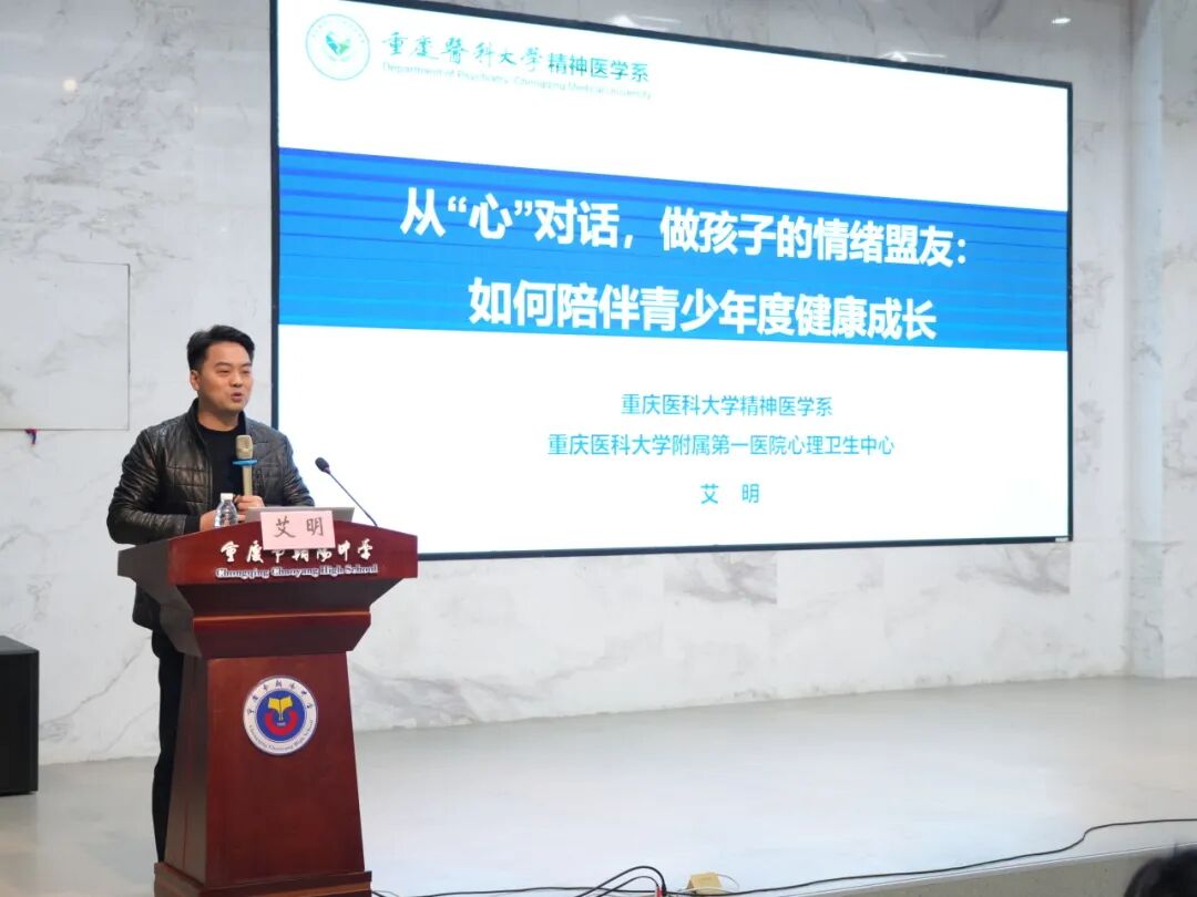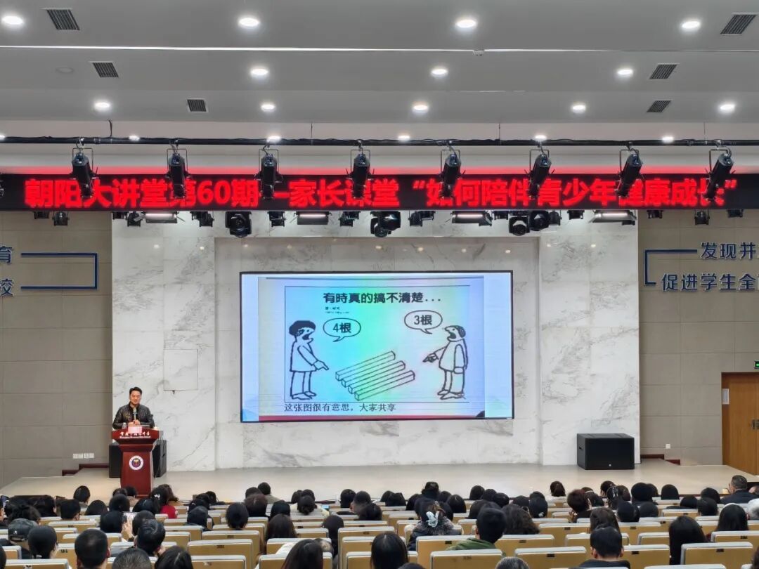 为提升亲子沟通质量、护航青春期心理健康,12月5日,学校特邀重庆医科大学精神医学系副主任艾明教授作客朝阳大讲堂,作了主题为“从‘心’对话,做孩子的情绪盟友”的心理健康讲座,500余名家长参加了此次讲座。