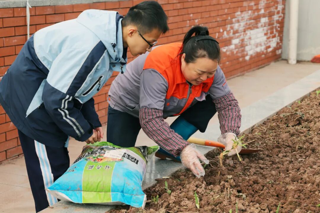 最为激动人心的开耕时刻终于到来。主持人宣布:“耕成菜园,正式启动!”话音落下,现场响起热烈的掌声,各班师生手持承包牌与劳动工具,满怀热情地走向各自的“责任田”。插牌、松土、规划……他们弯下腰,触摸泥土,亲身感受土地的厚重与温度。一时间,菜园里身影忙碌,笑语交织,土壤间洋溢着青春的活力与劳动的欢欣,一片蓬勃景象在这片有温度的土地上生动铺展。